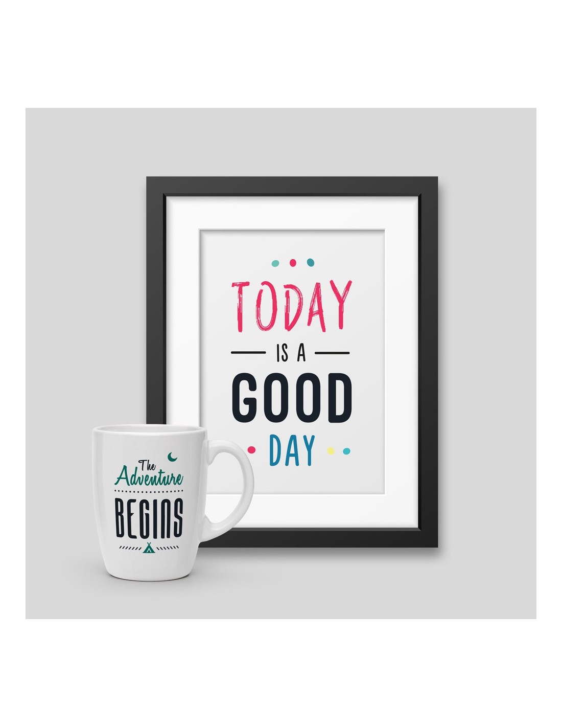 Mug The Adventure Begins + Framed poster Today is a good day 40x60cm